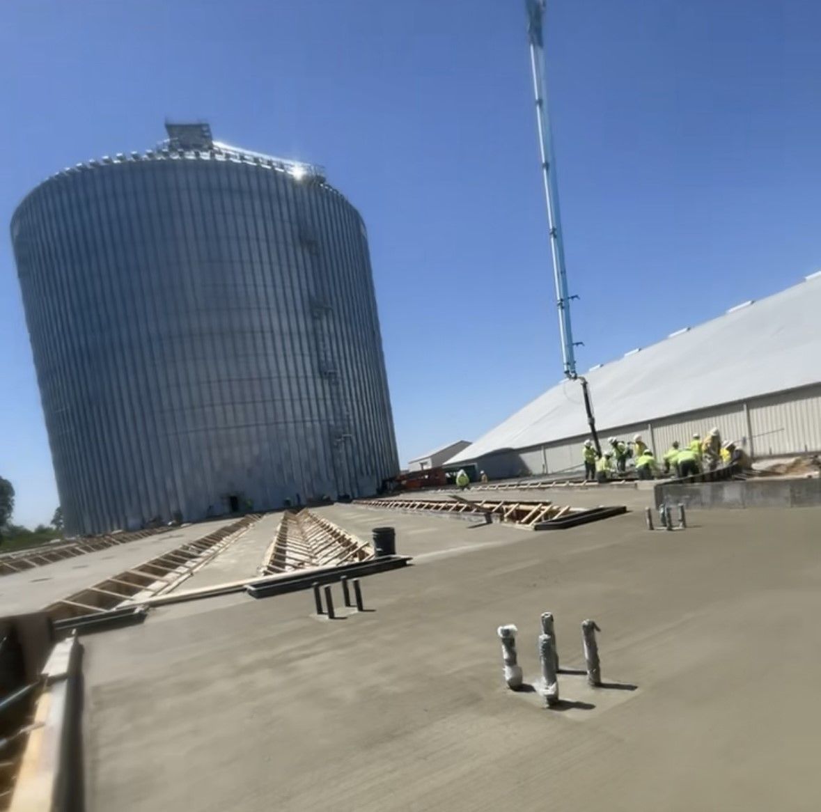 Our concrete services include foundations and flatwork for seed bins, grain silos, flat grain storage systems, steel grain bins, aeration trenches, equipment pads and more.