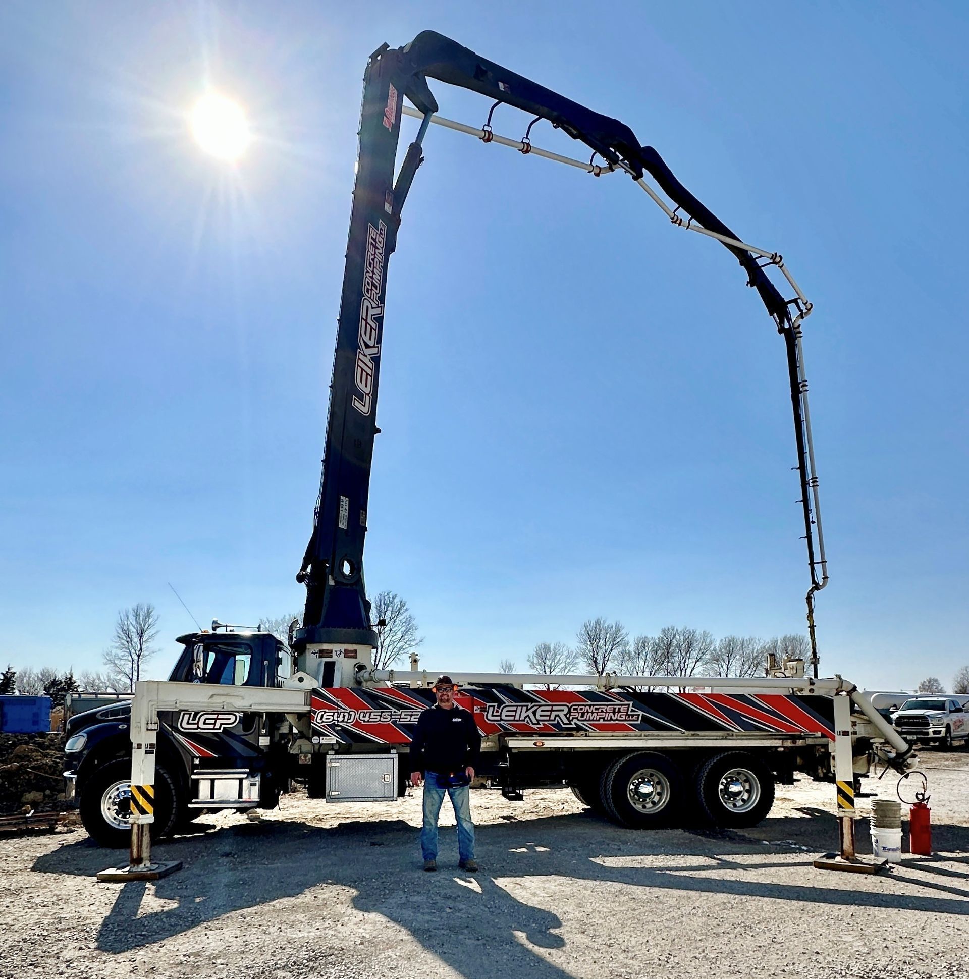 From small residential work to foundations for the largest grain bin in the world, Leiker Concrete has proven dependable knowledge and reliability year after year. Clayton started pouring concrete when he was 19 years old for his cousin's concrete business, before beginning his own company, Leiker Custom Concrete. Agricultural and industrial companies rely on us for the job to be done right, within the timeframe and on budget. We pour a variety of projects, including ethanol plant buildings, warehouses, grain bins and more. In 2023, Clayton expanded his concrete business by acquiring a 39-meter concrete pump truck, and began Leiker Concrete Pumping.
